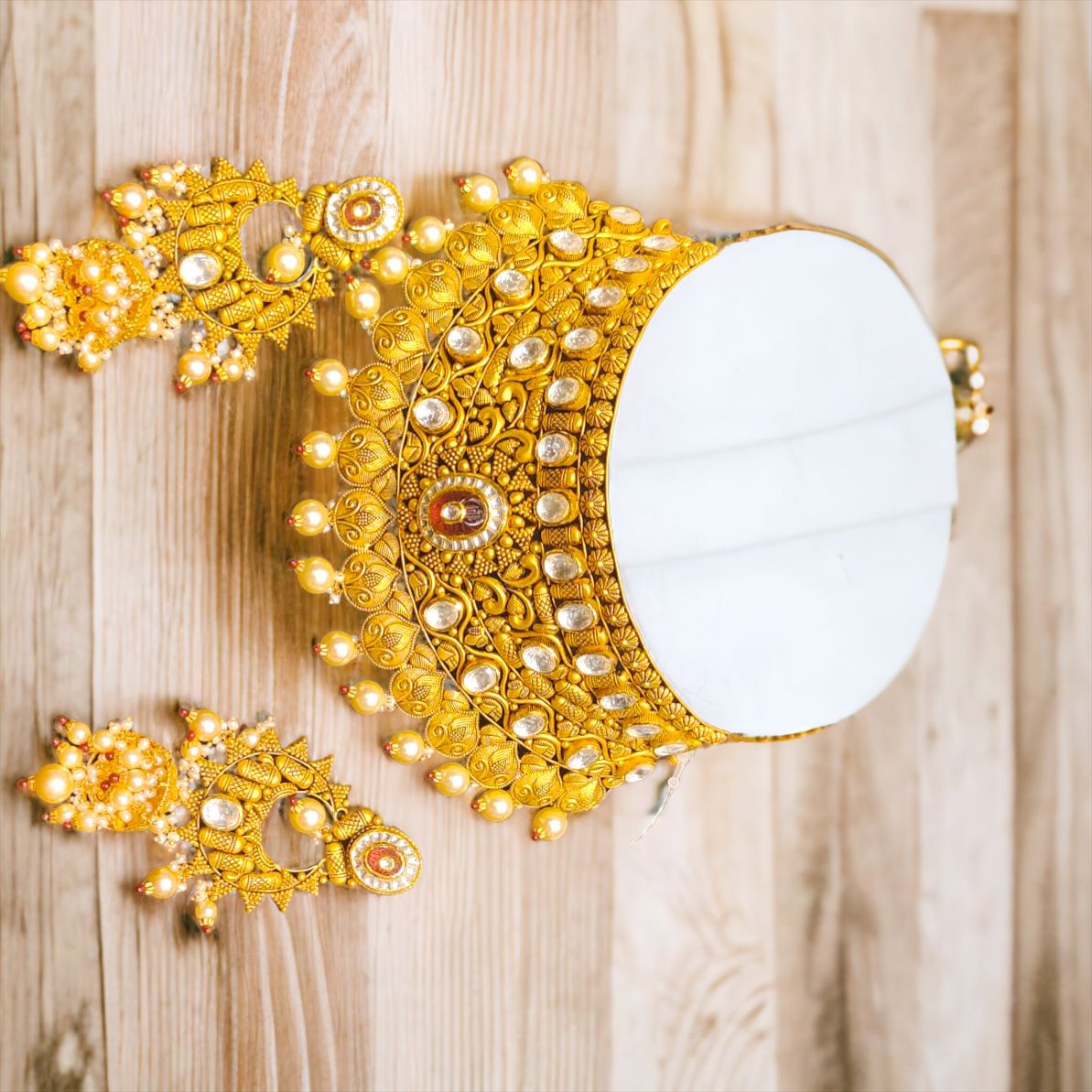 Elevate your elegance with this Traditional Indian Necklace and Earring Set, meticulously crafted to complement authentic attire. The intricate design reflects rich cultural heritage, making it perfect for weddings and festive occasions. Expertly fashioned, this set offers both timeless beauty and sophistication, ensuring you make a memorable impression.
