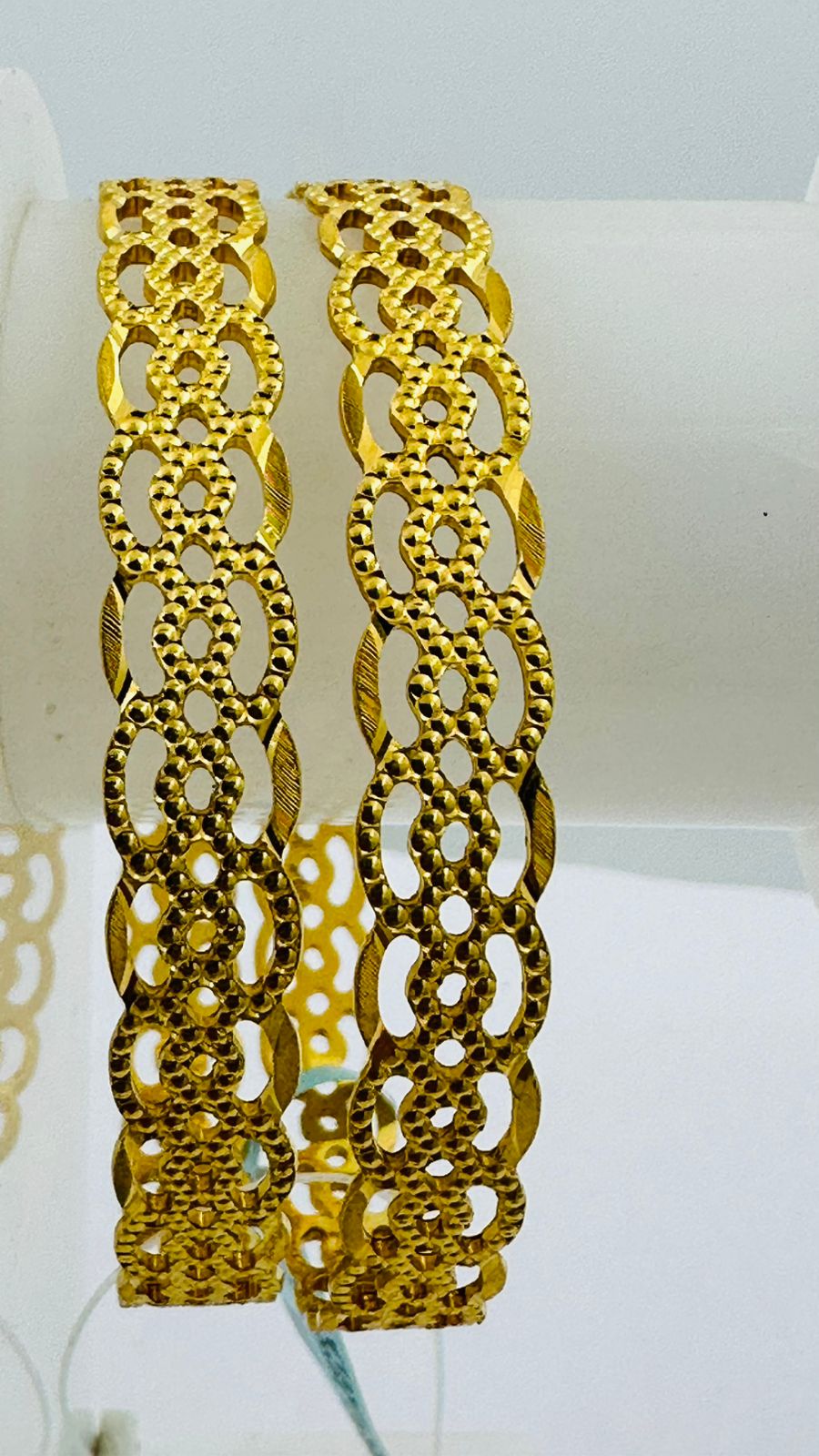 This exquisite Filigree Bangle showcases intricate hand-crafted metalwork that highlights delicate patterns and fine detailing. Expertly designed, it offers both elegance and a lightweight feel, making it comfortable for all-day wear. The intricate filigree technique underscores skilled craftsmanship, providing a timeless accessory that complements both traditional and contemporary styles. Ideal for those who appreciate refined artistry in jewelry.